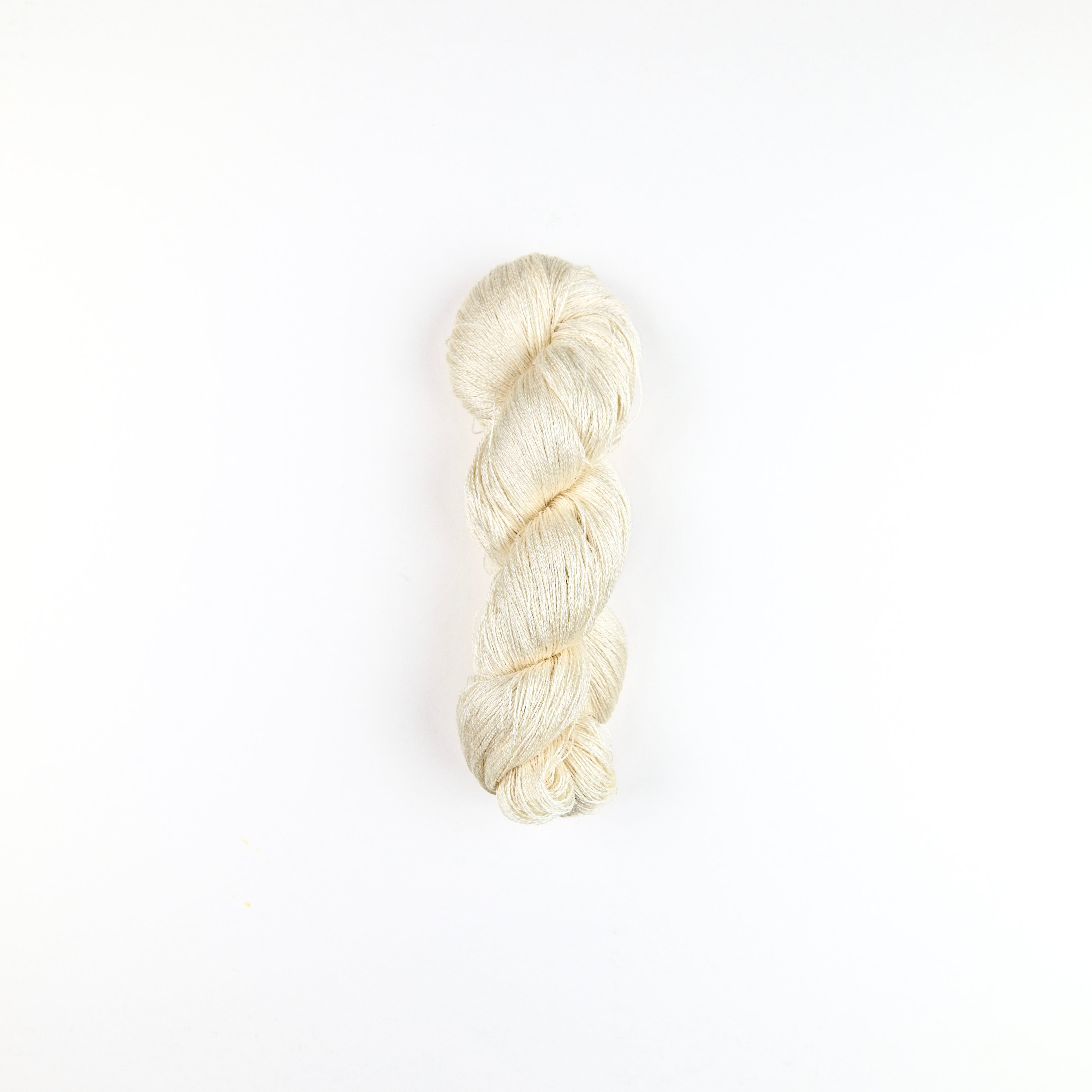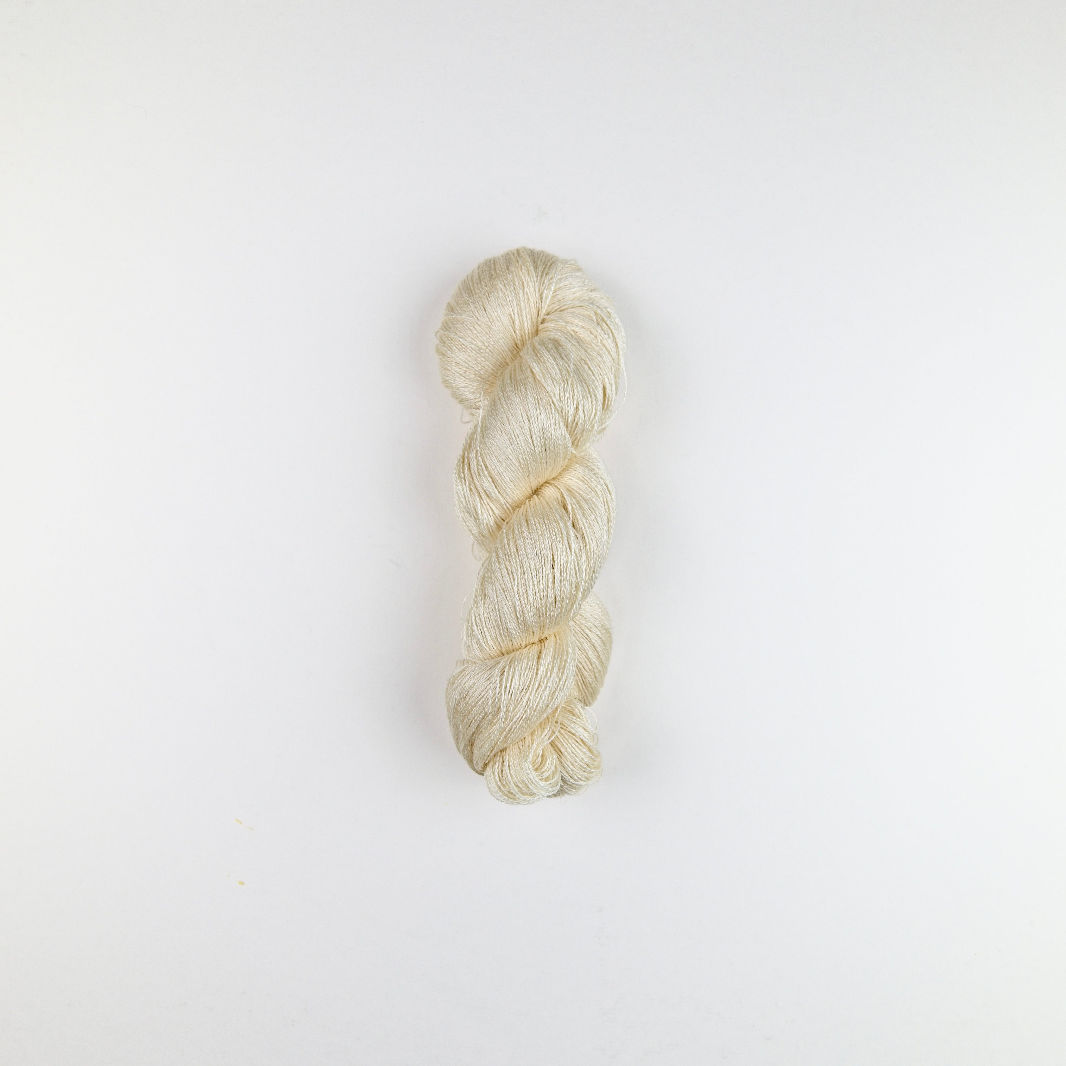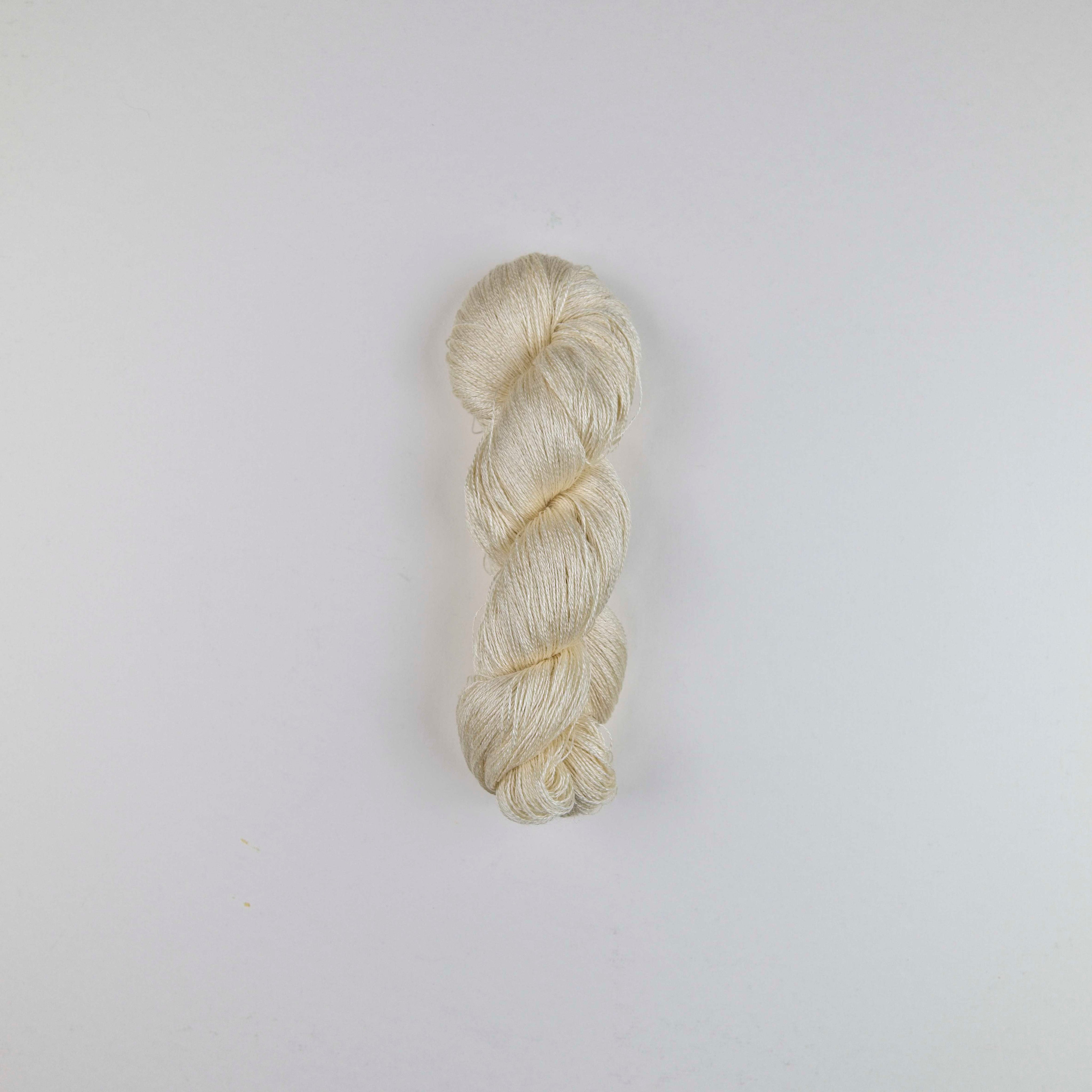 Tussah is naturally a soft beige and is produced by tussah silkworms that feed on oak leaves and other leaves rich in tannin. The yarn, when overdyed, produces a muted version of the same colours used on our Bombyx silk yarns.